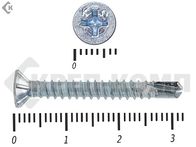 Саморезы для оконного профиля имеют потайные головки со шлицами Ph2 под крестообразные отвертки и насадки соответствующего размера. Благодаря потайной головке и насечкам для раззенковки отверстия, крепеж утапливается в пластике или древесине. Поэтому саморез не выступает выше кромки профиля, даже если закручен с небольшим перекосом.